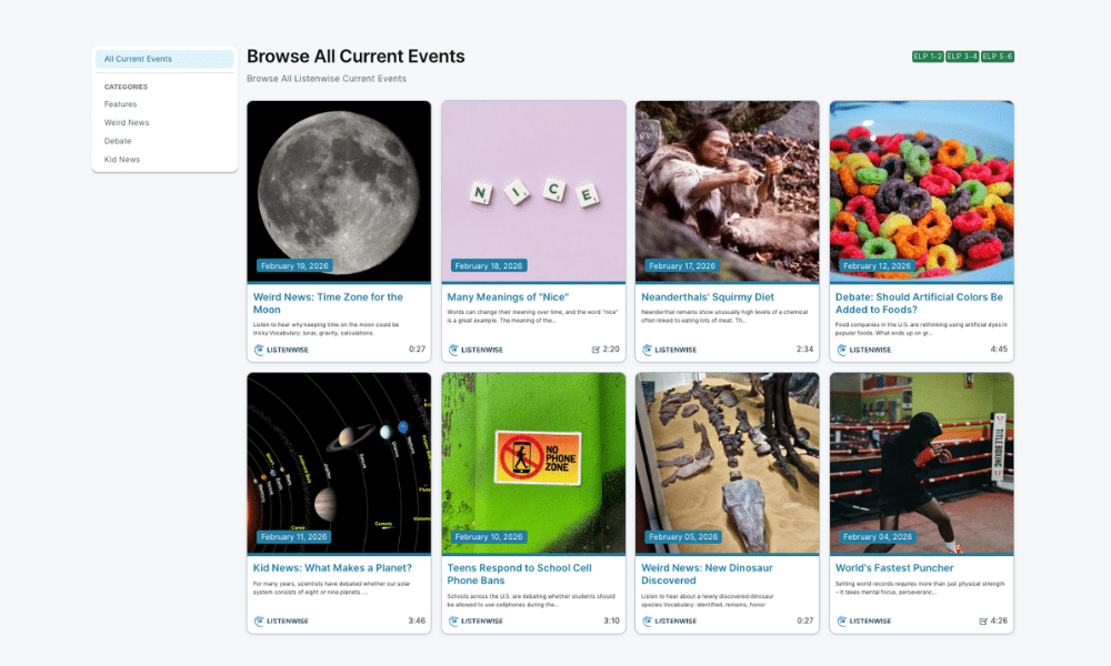 Use the Listenwise ELD Lesson Library specifically for your English Learners. These lessons are designed with slower speech rates, built-in picture dictionaries, and “speaker opinion” tasks that directly align with the ELPAC.