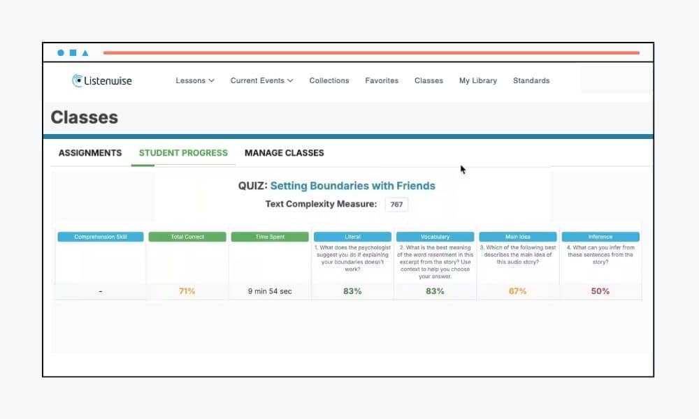 Embedded progress monitoring in your podcast lessons? Yes, please! It’s one less piece of data I need to collect later! Additionally, Listenwise has accommodations embedded in the program that allow students to take control of their own learning: